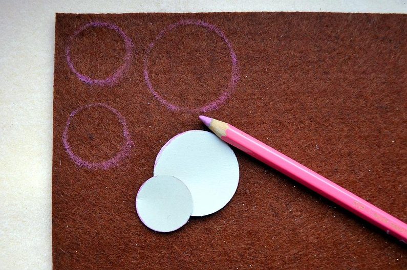 Připravíme si šablony zvlášť pro náušnice (průměr 25 mm) a náhrdelník (průměr 35 mm), obkreslíme je textilní tužkou na podklad, na který budeme vyšívat. A vystřihneme je. Necháváme si kolem prostor.