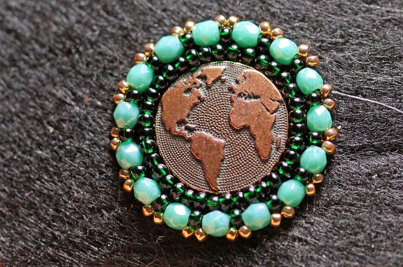 Na opačnou stranu motivu připevníme kleštěmi šlupnu. Dáme si pozor, abychom nerozbili nějaký korálek ve výšivce.