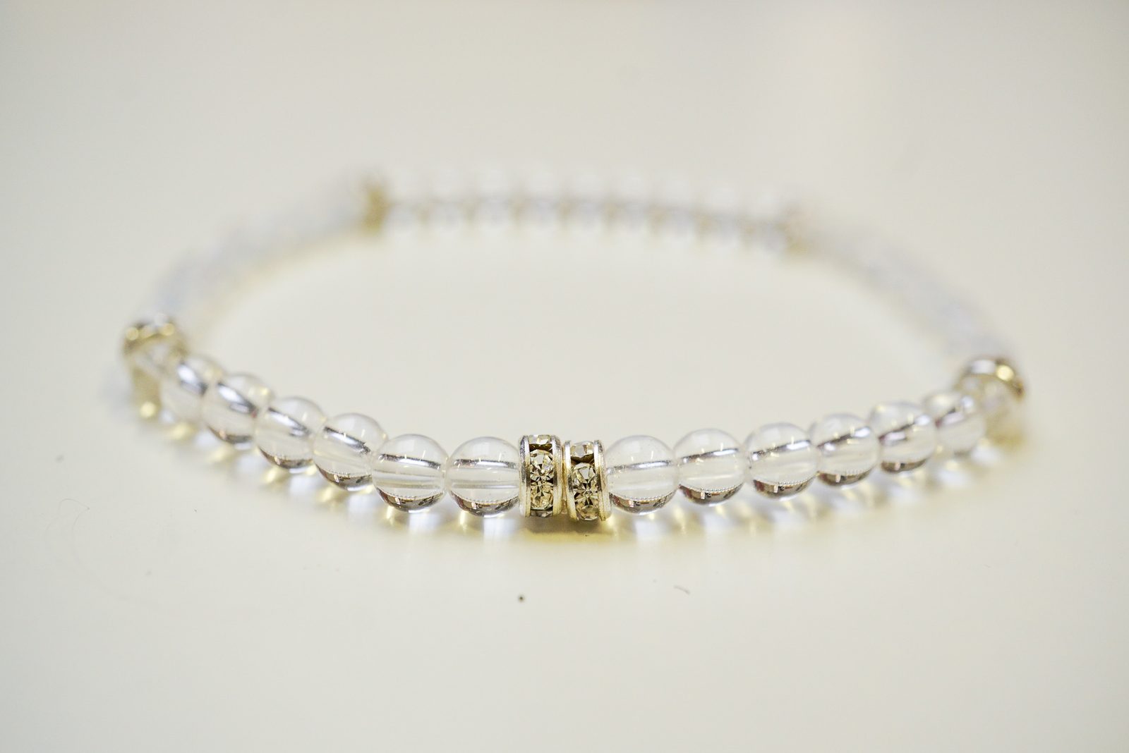 Poté stačí navlékat minerálové korálky a štrasové rondelky dle obrázkového vzoru.