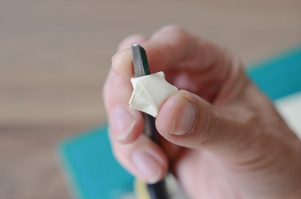 Hrany jemně promáčkněte ke středu a vytvarujte tak požadovanou hvězdičku.
