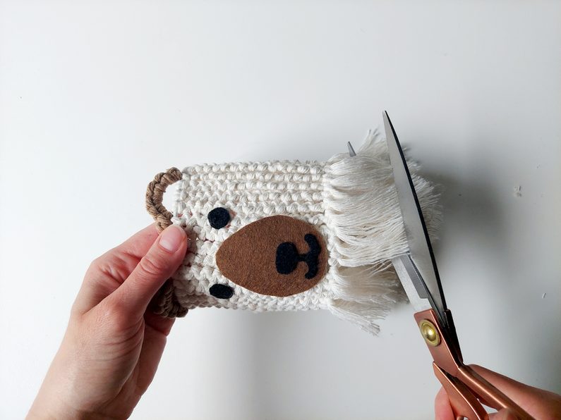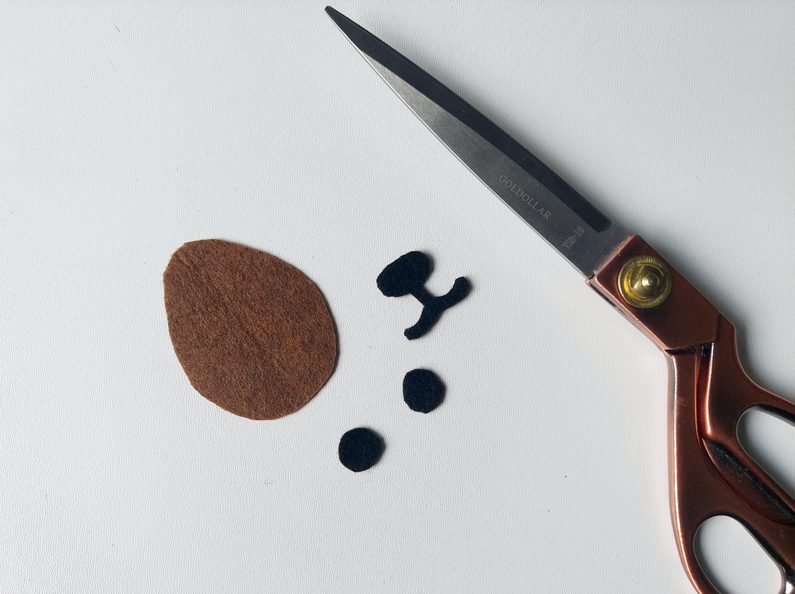 Z filcu si vystřihneme čumáček a očička, která na stínidlo přilepíme.