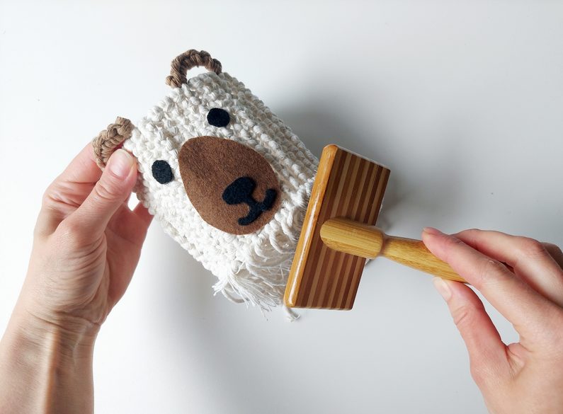 Ouška zakončíme klasickým uzlíkem a konce ustřihneme.
