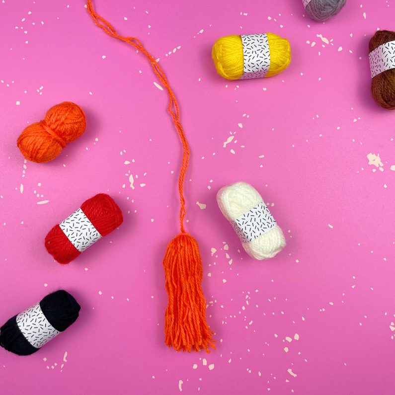Nejprve si několikrát obmotejte kartonovou destičku barevnou přízí, kterou si vyberete. Tloušťku destičky zvolte podle sebe, jak chcete mít postavičku velikou. Vrchní část svažte kouskem příze.