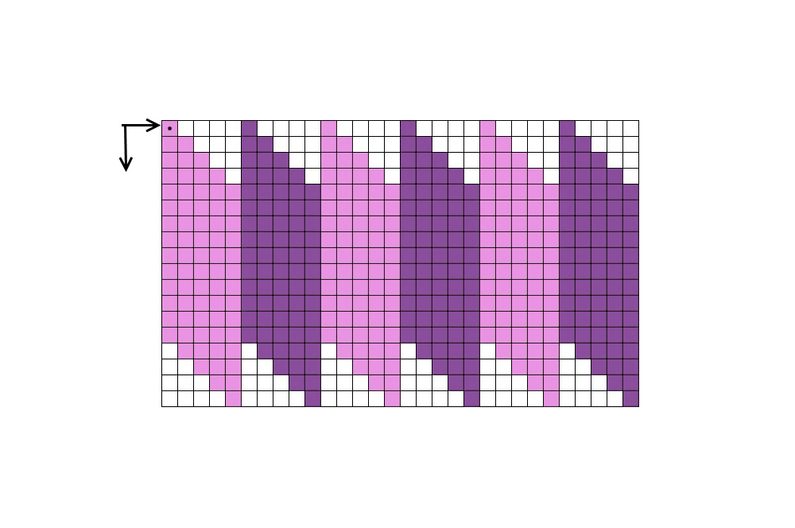 Vzor si začněte navlékat odshora (první korálek první řady je označen černou tečkou). Navlékejte jen barevné, bílou barvu ignorujte. Mezi řadami doporučuju navlékat malý papírek, tak se vyhnete případným chybám a bude se vám líp počítat.