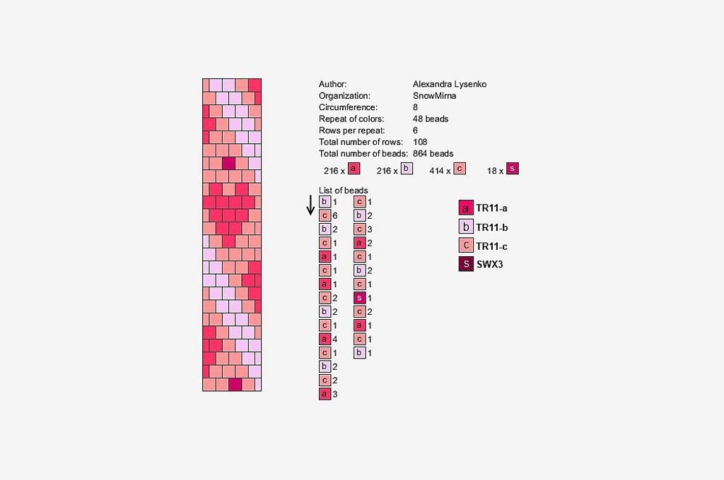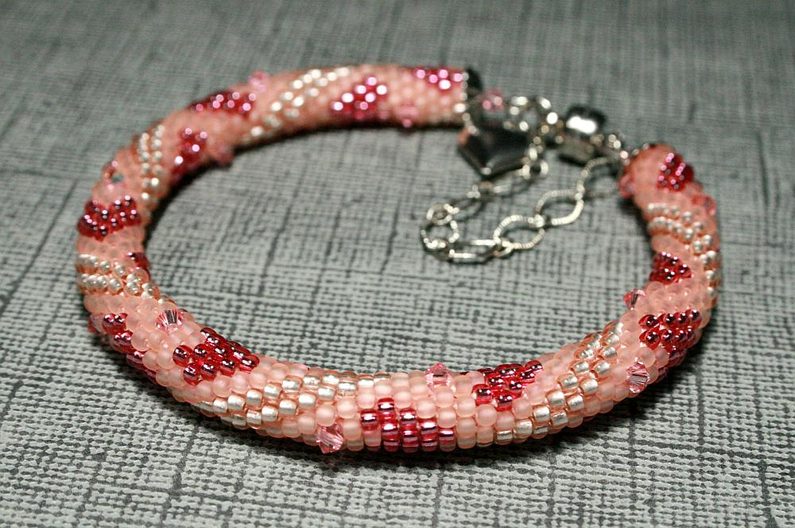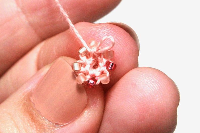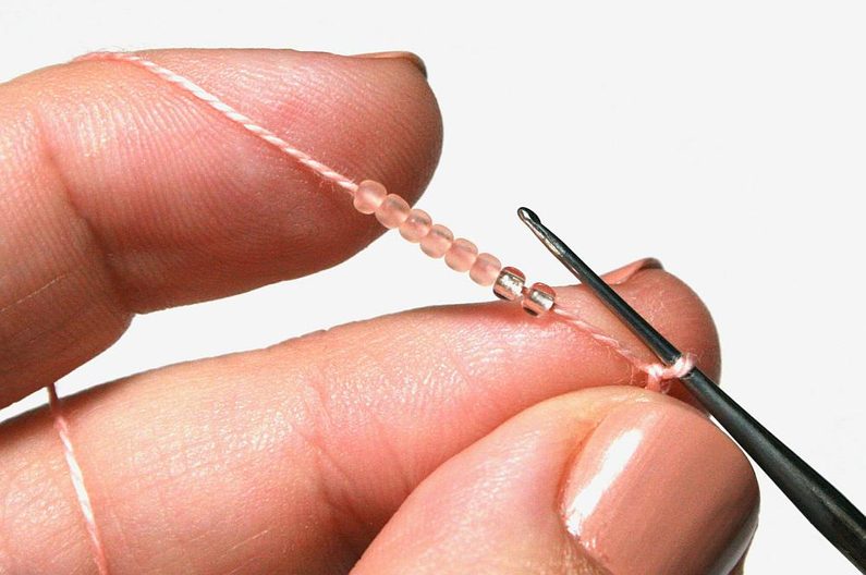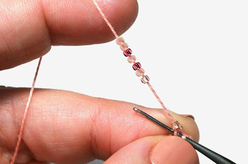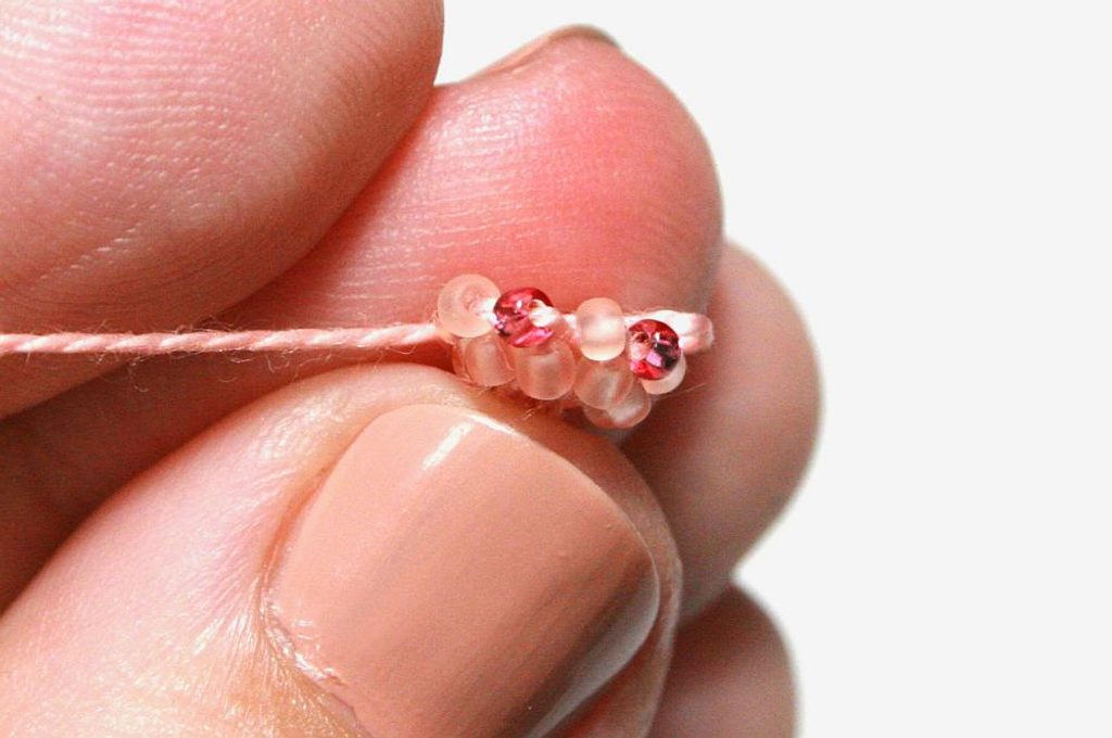 Nejdříve navlékněte na přízi korálky podle vzoru (Obr. 1).