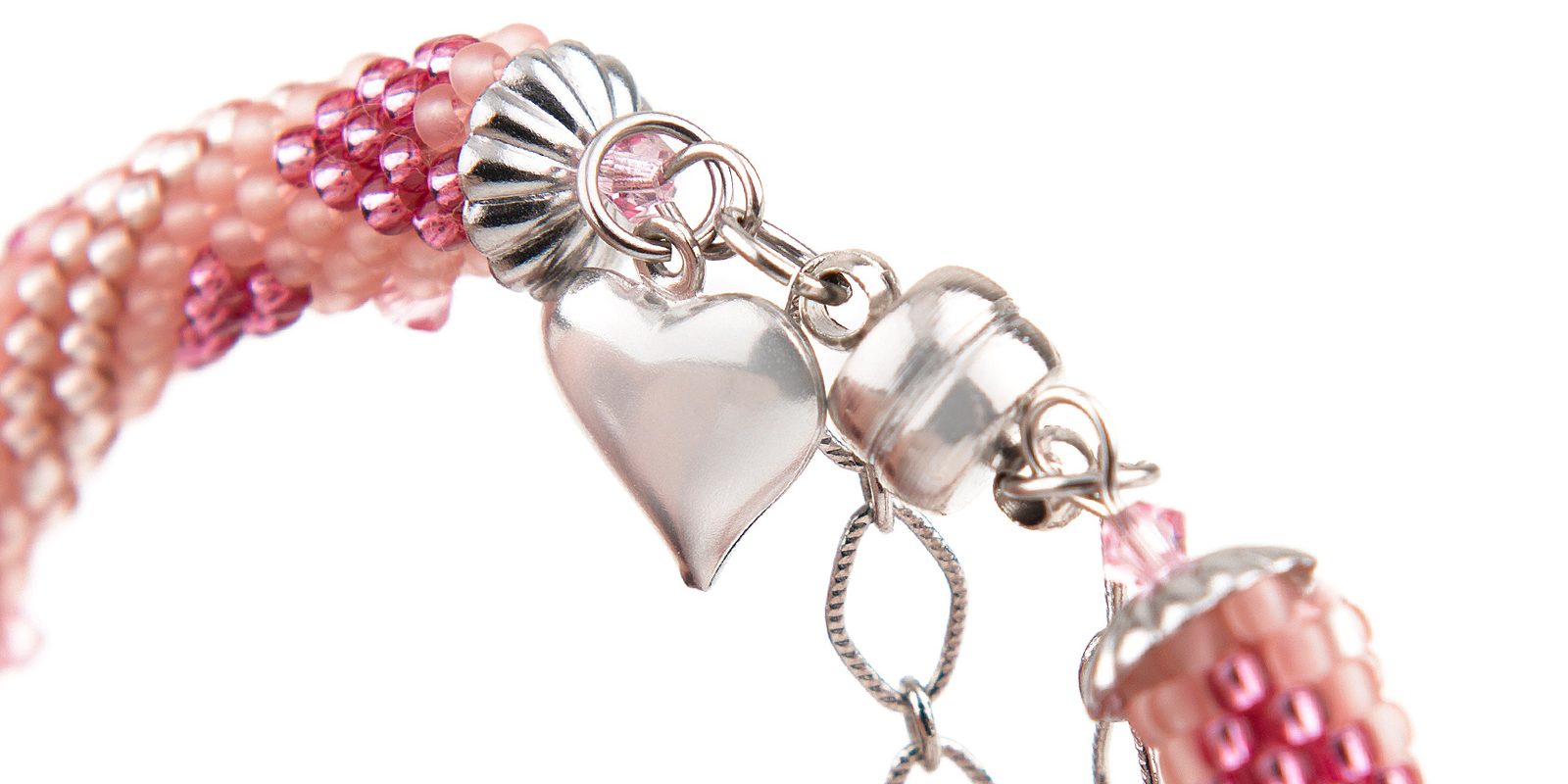 Zapínání a přívěsek ve tvaru srdíčka připevněte pomocí spojovacích kroužků.