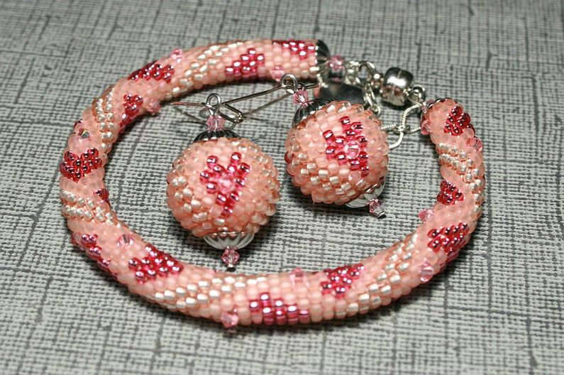 Do sady k jemnému valentýnskému náramku si můžete uháčkovat náušnici-kuličky se srdíčkem