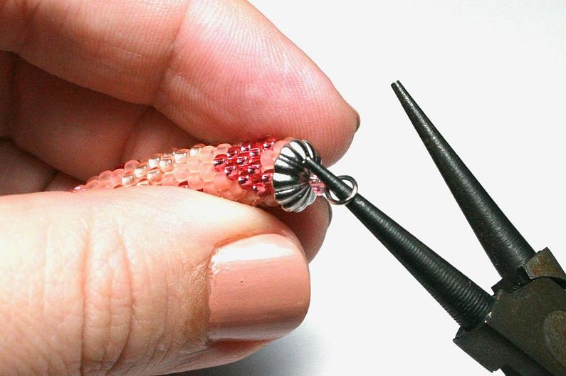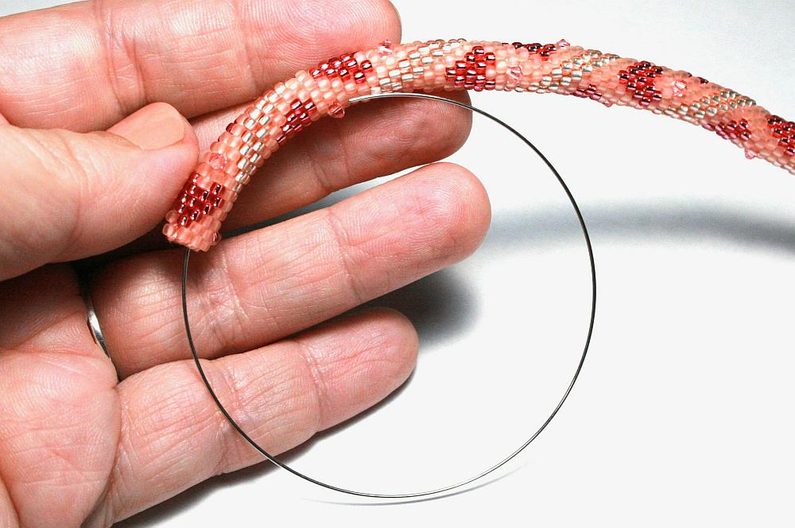 Navlékněte dutinku na paměťový drát (Obr. 17). Dále navlékněte kaplík s korálkem. Konce paměťového drátu stočte do očka pomocí ketlovacích kleští. (Obr. 18)