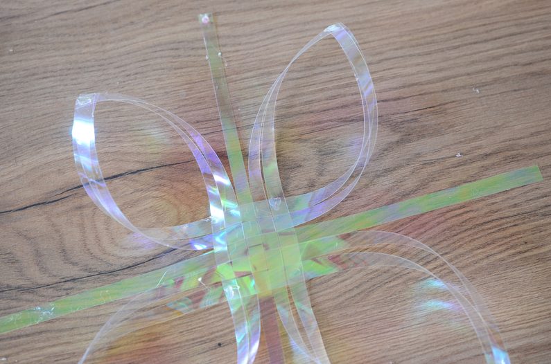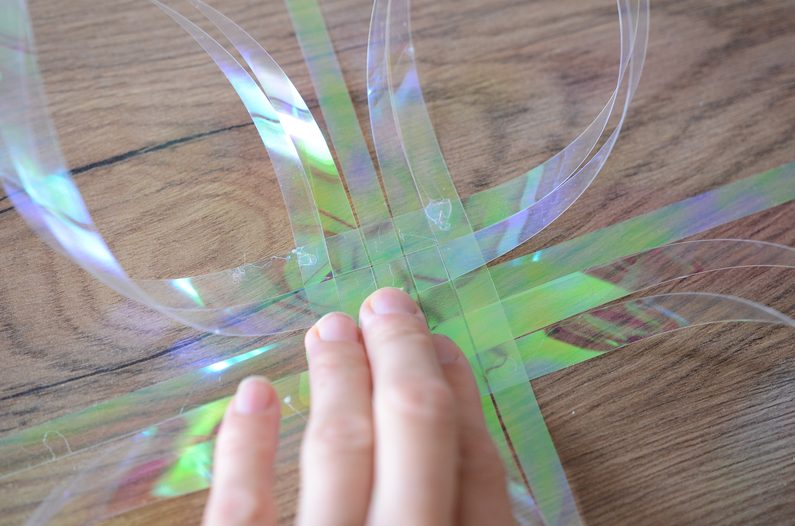 Následně slepte k sobě konce druhých pásků v pořadí a pokračujte podle vzoru v dalších sekcích. Prostřední pásky nechte zatím volné.