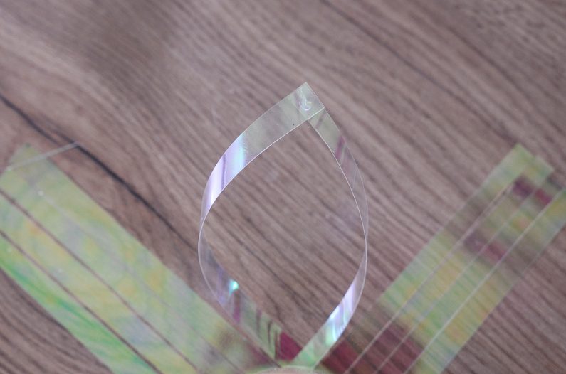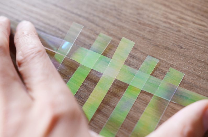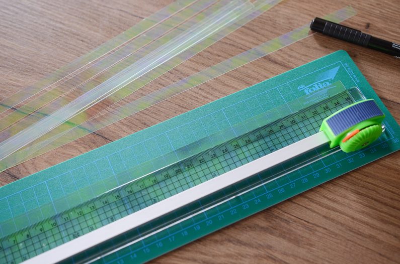 Na dlouhé straně folie si na obou koncích vyznačte po 1 centimetru body. Poté z ní nařezejte celkem 20 stejných pásků.