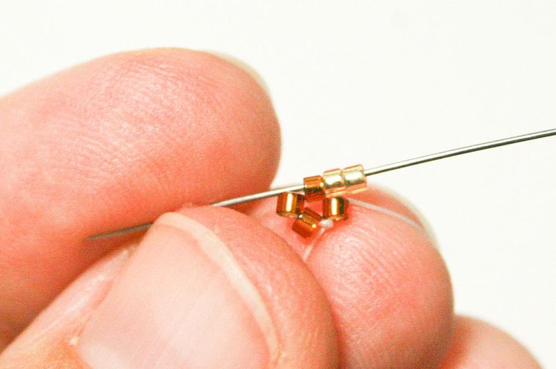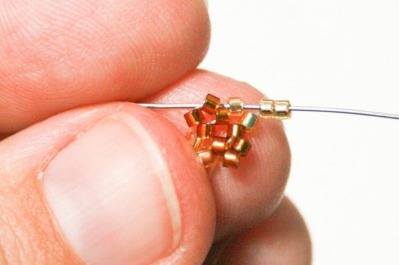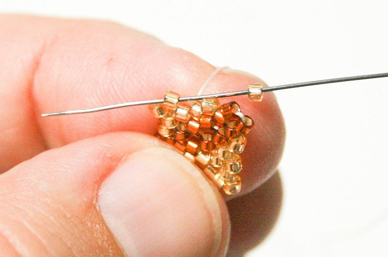 Až budeme na konci řady, protáhneme jehlu posledním korálkem předchozí řady