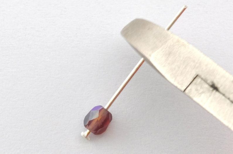 Nyní je třeba uketlovat přívěsek. Na ketlovací nýt navlečeme 1× BK4a. Pomocí štípacích kleští nýt zkrátíme tak, aby se na zbylém konci dalo pomocí kulatých kleští udělat očko.