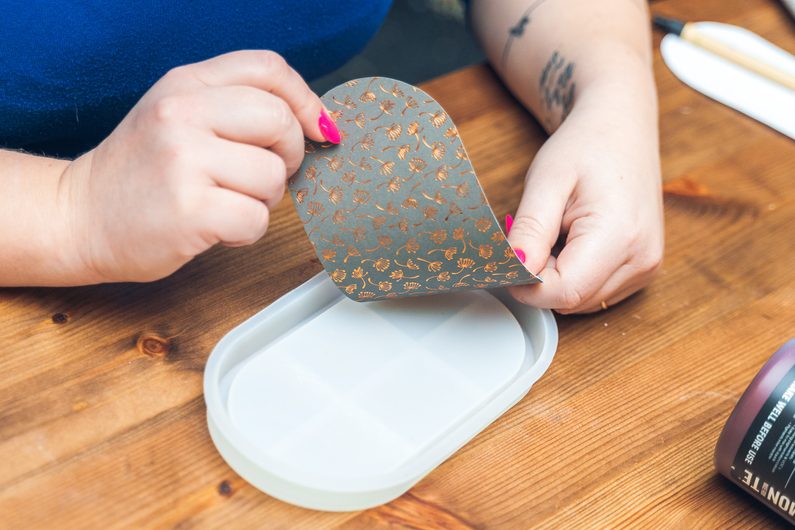 Necháme do druhého dne vyschnout a poté aplikujeme vrstvu křišťálové pryskyřice, která zaručí papíru odolnost.