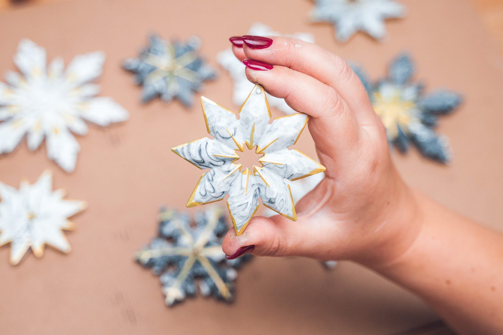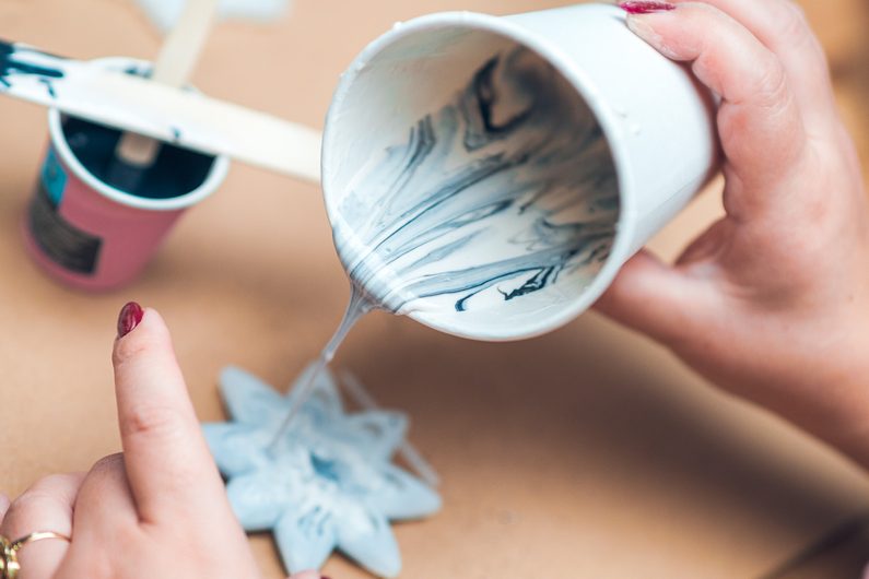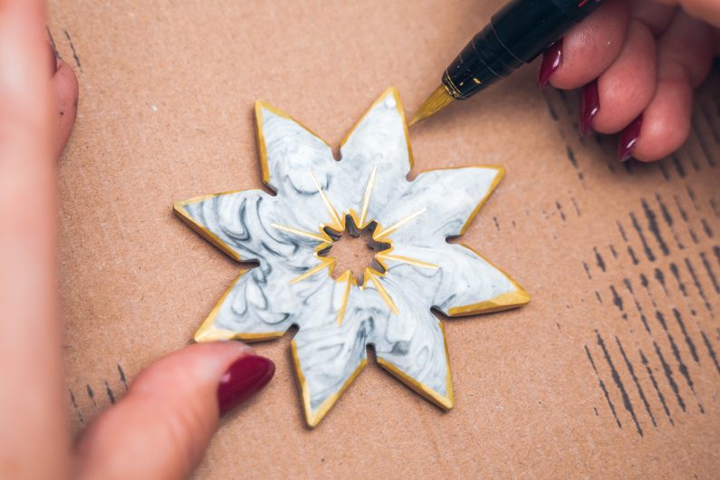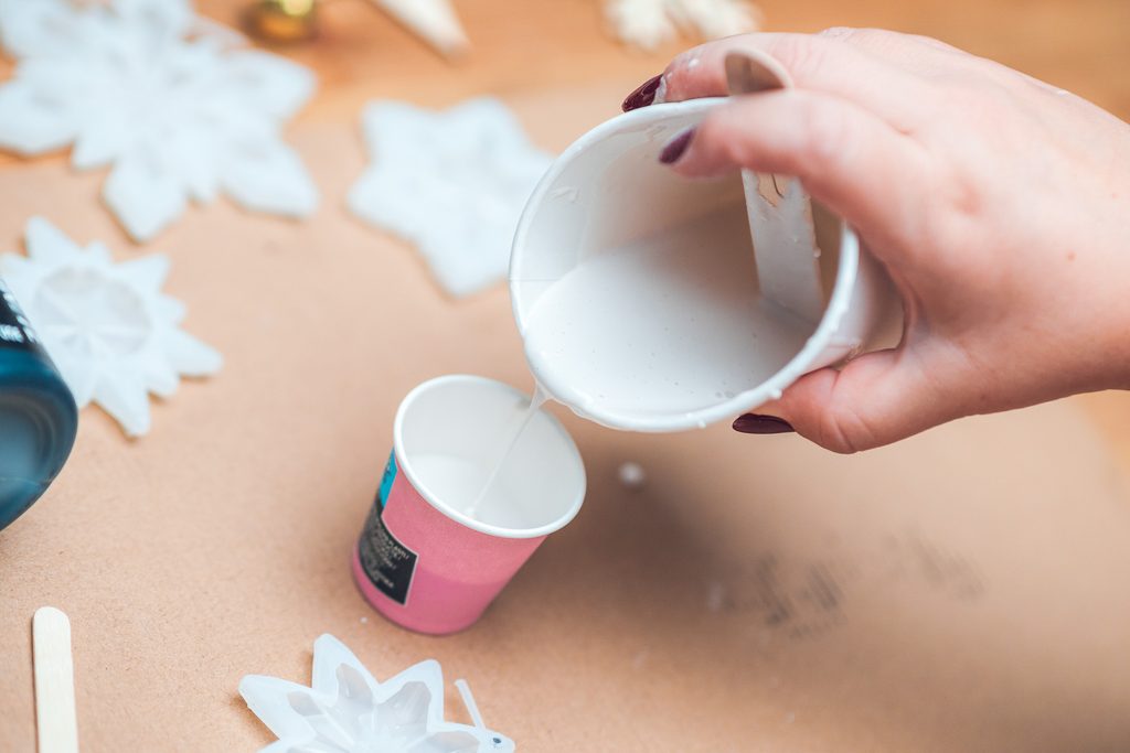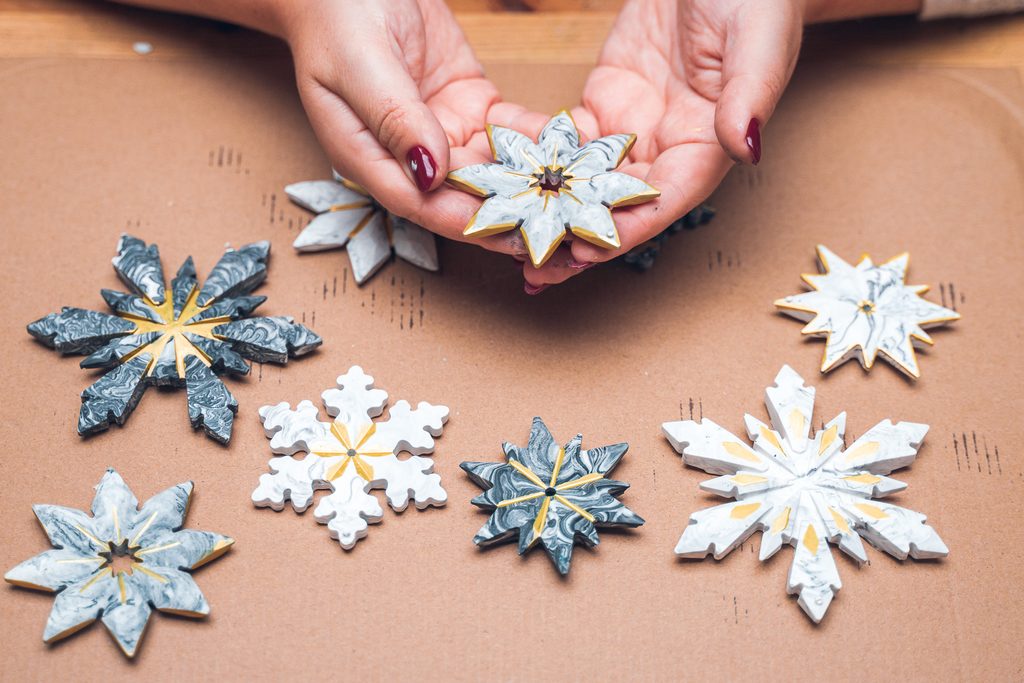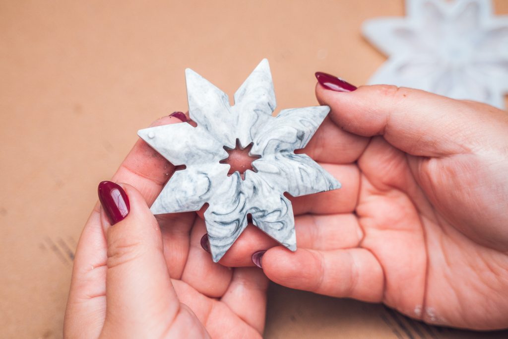 Po vyndání z formy necháme výrobky do druhého dne dokonale vyschnout. Vločky můžeme dozdobit zlatou nebo stříbrnou akrylovou fixou a následně zavěsit na provázek. Hotovými ozdobami můžeme ozdobit přímo vánoční stromek nebo například závěsy.