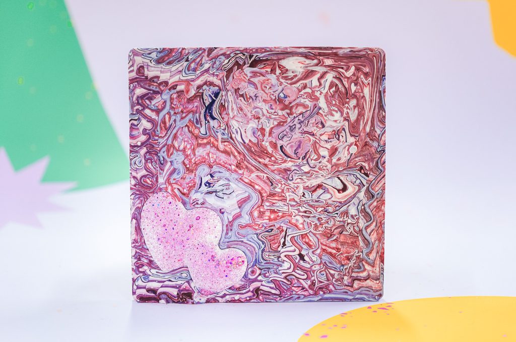 Kapkou pigmentu, který lehce rozmícháme, ji obarvíme do mramorového efektu.