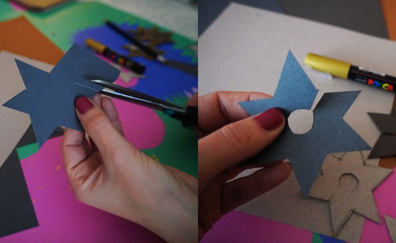 • Hvězdičku si nastřihněte a uprostřed vystřihněte otvor.