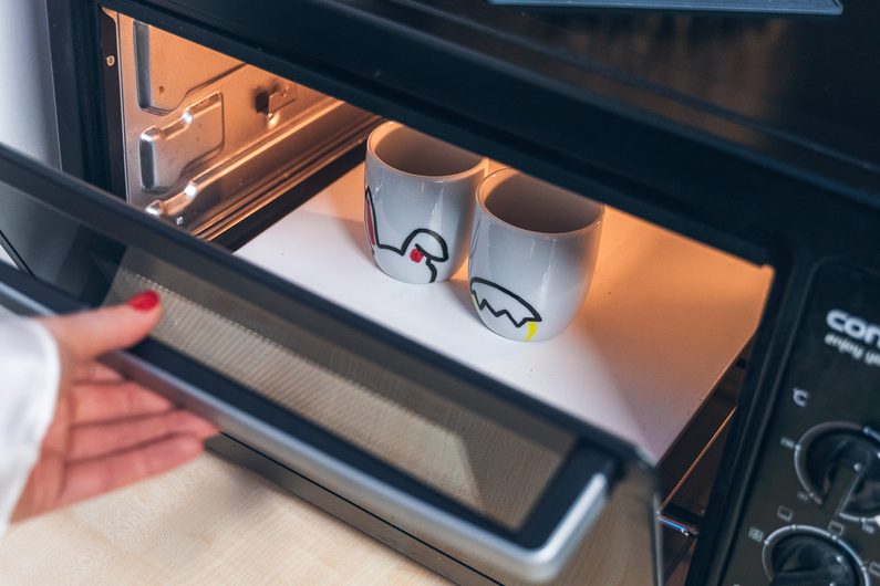 Poté dáme hrneček zapéct do trouby - 160°C po dobu 90 minut. Z trouby porcelán vyndáme opatrně a necháme ho vychladnout na místě, kde na něj nedosáhnou děti.