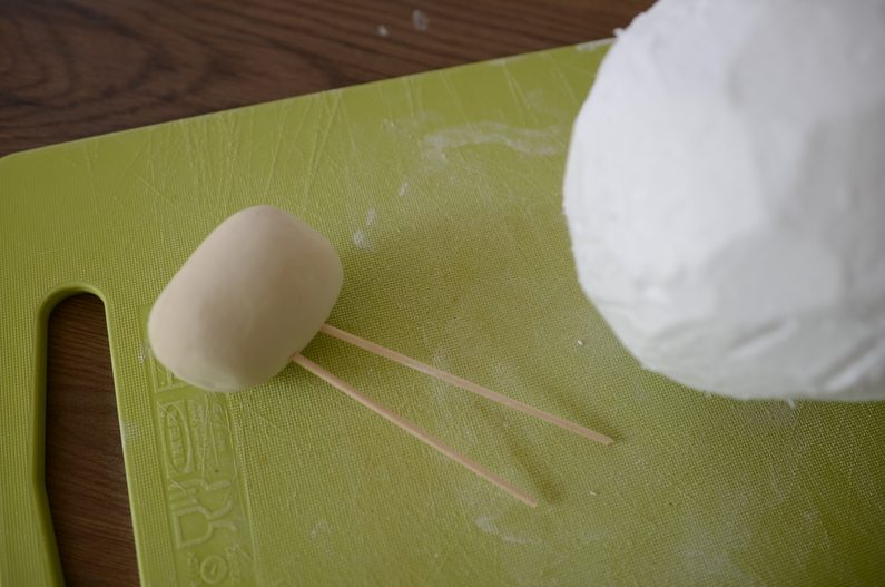 polovinou, vytvoří budoucí rohy. Umístěte je na hlavu beránka a trochu