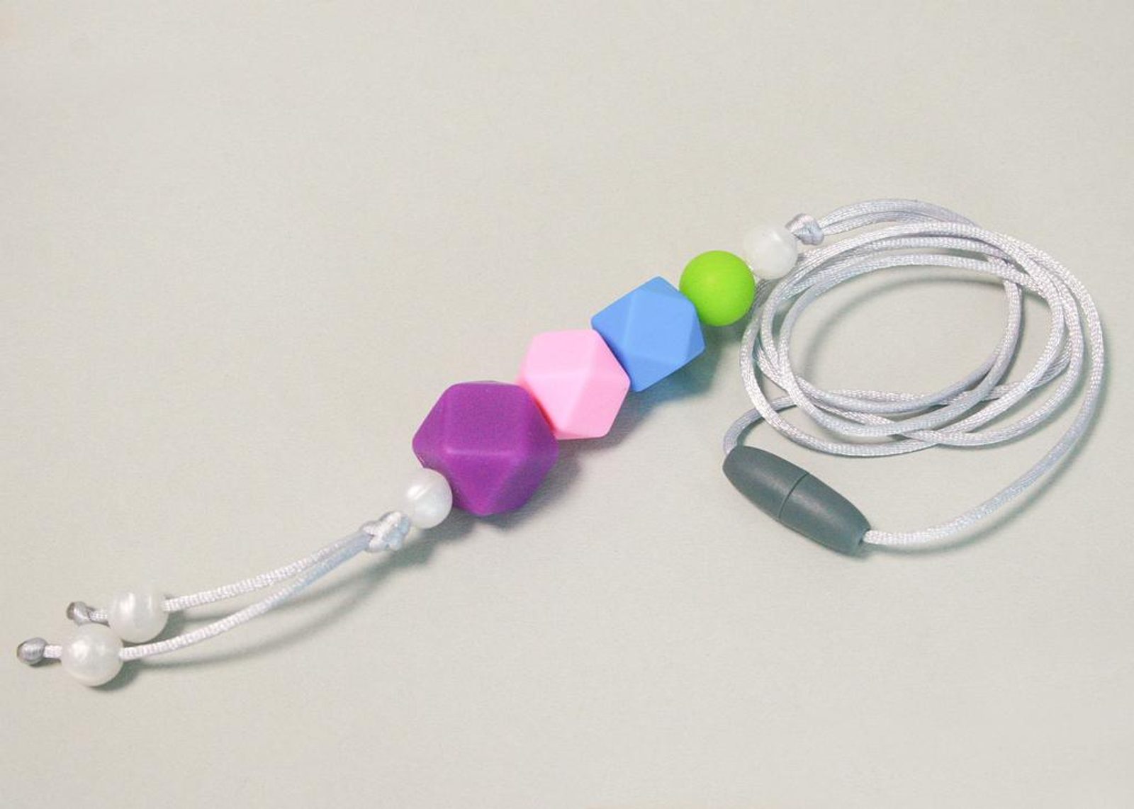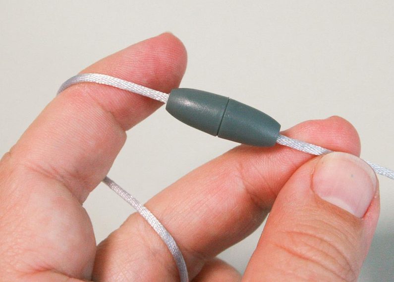 Délku šňůrky zkraťte dle sebe. Na konce šňůrek navlékněte zapínaní, udělejte uzlík, zatavte a vtáhněte dovnitř zapínaní.