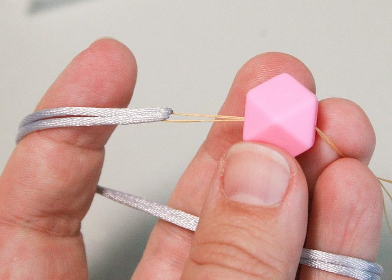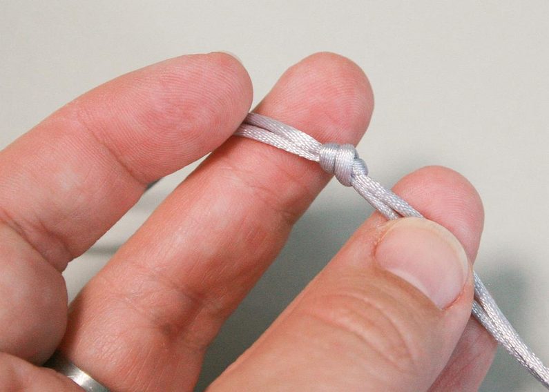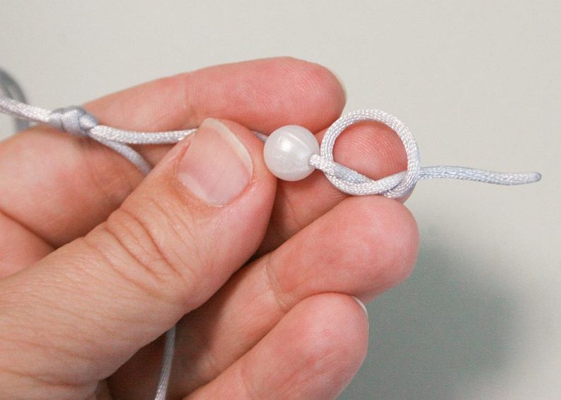 Na druhém konci navlečených korálků udělejte taktéž uzlík.