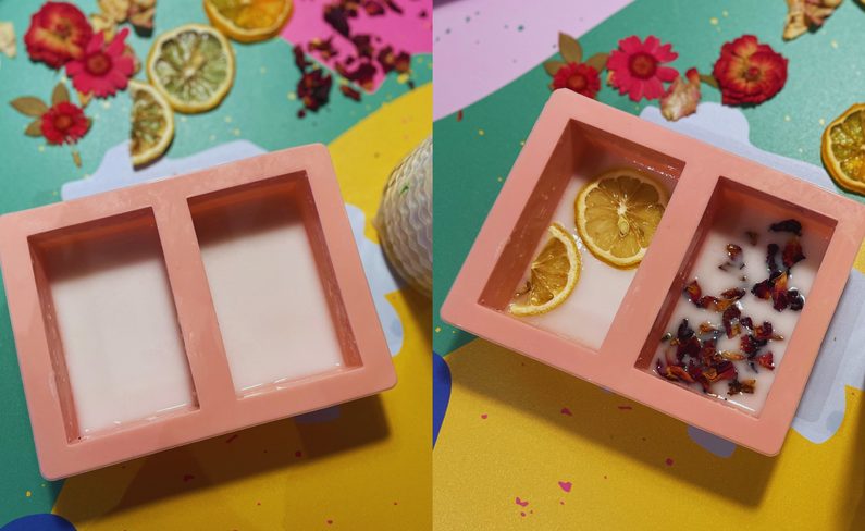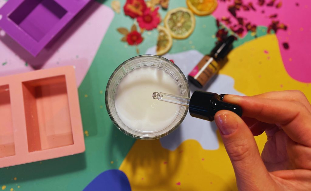 Do rozpuštěné hmoty nakapeme pár kapek vonné esence a promícháme.