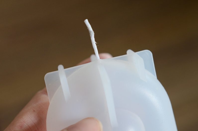 Kulatým ostrým předmětem propíchněte dno formy a protáhněte jí špičku knotu.