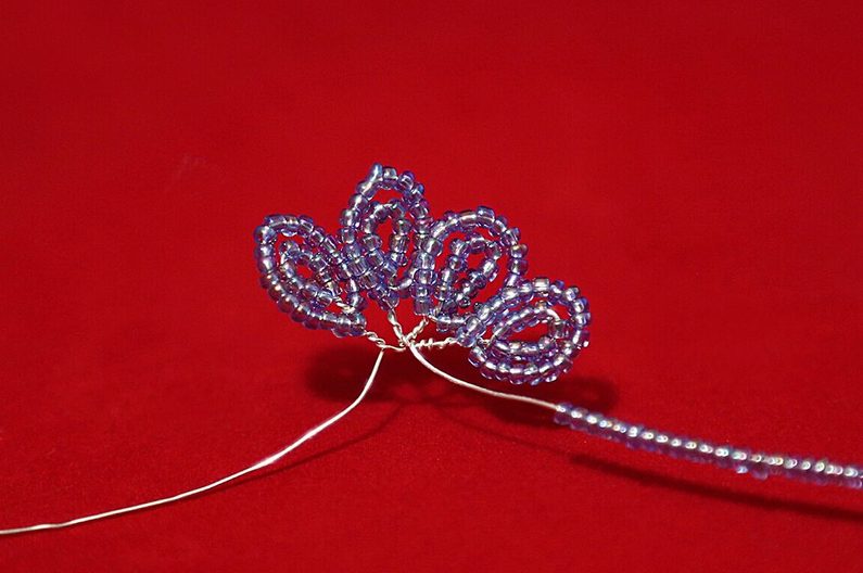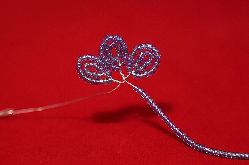 Vytvořte druhou smyčku a stočte drát. Již máte dva okvětní lístky.