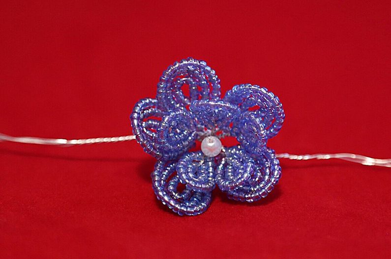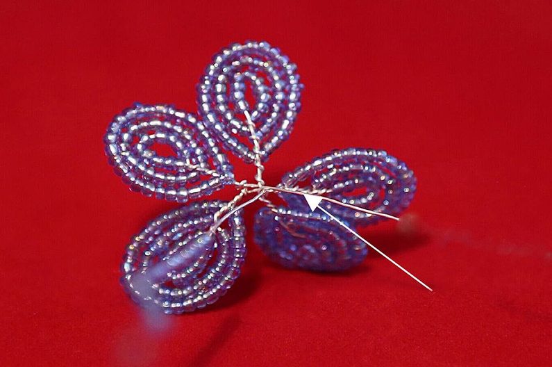 Stočte dva dráty poblíž spoje prvního a posledního okvětního lístku k zajištění a vytvarování okvětních lístků. Do středu květu můžete přidat perli nebo rokajl.