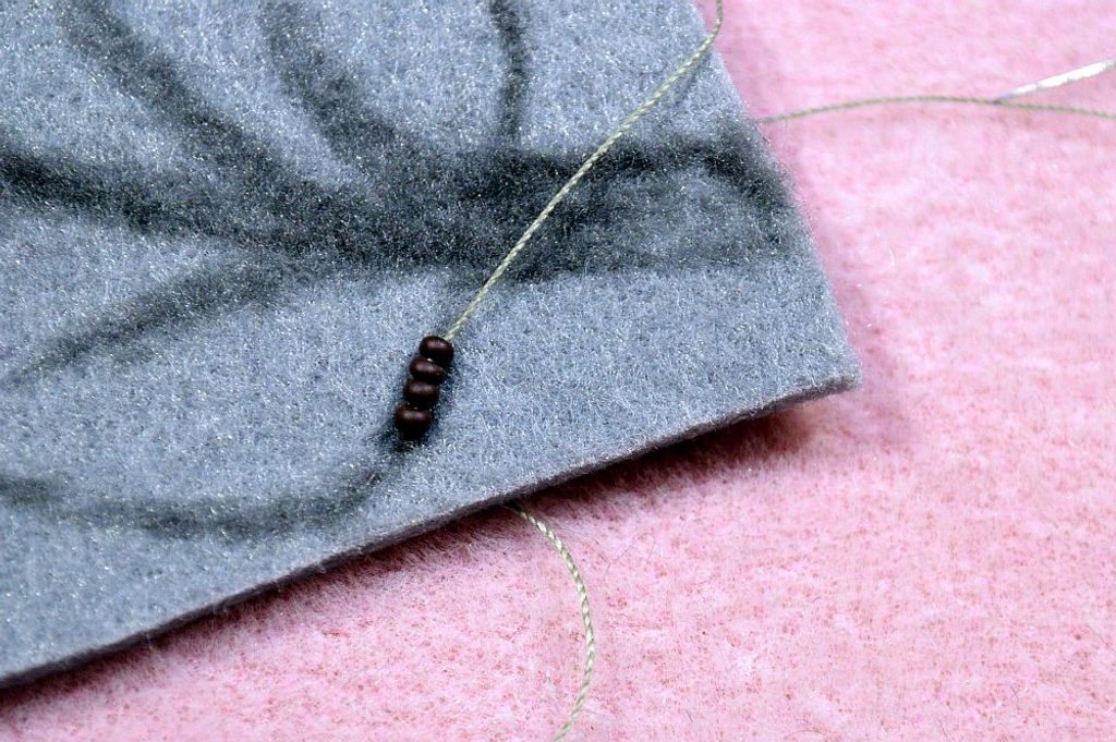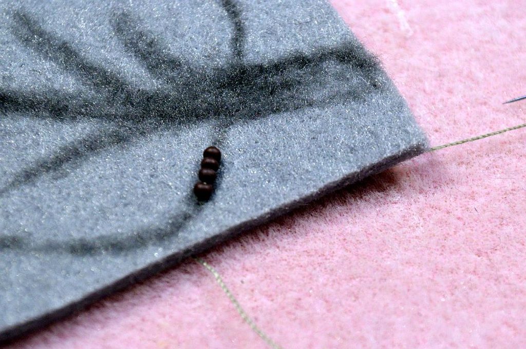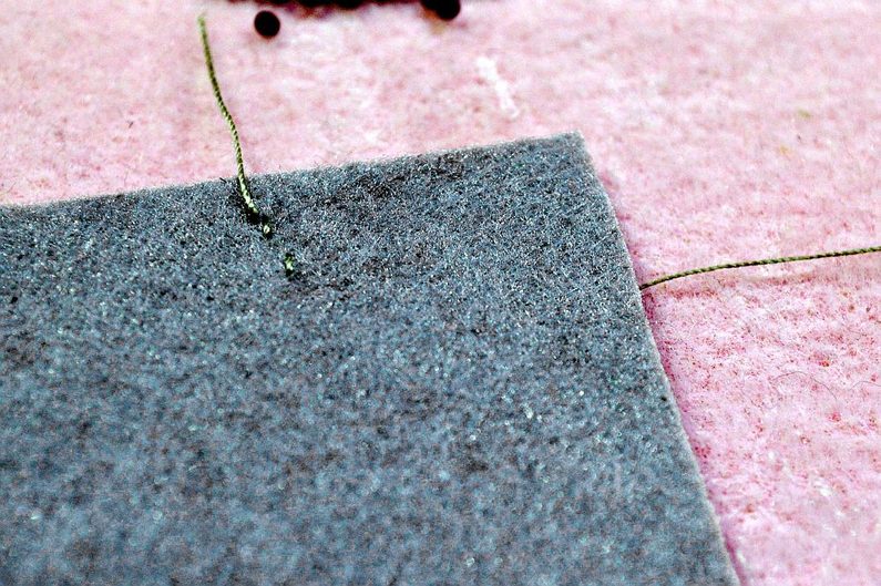 Pokud se nám stane, že prosvítá část filcu ve složitém tvaru, tak jednoduše přidáme řadu; naspodu už by mohla být vidět nit, což nechceme. Takže si zespodu hlídáme délku stehu, aby byla pokud možno co nejmenší. Pokud máme správnou barvu nitě – to jest ideálně v barvě podkladu, tak malá oprava není vidět.