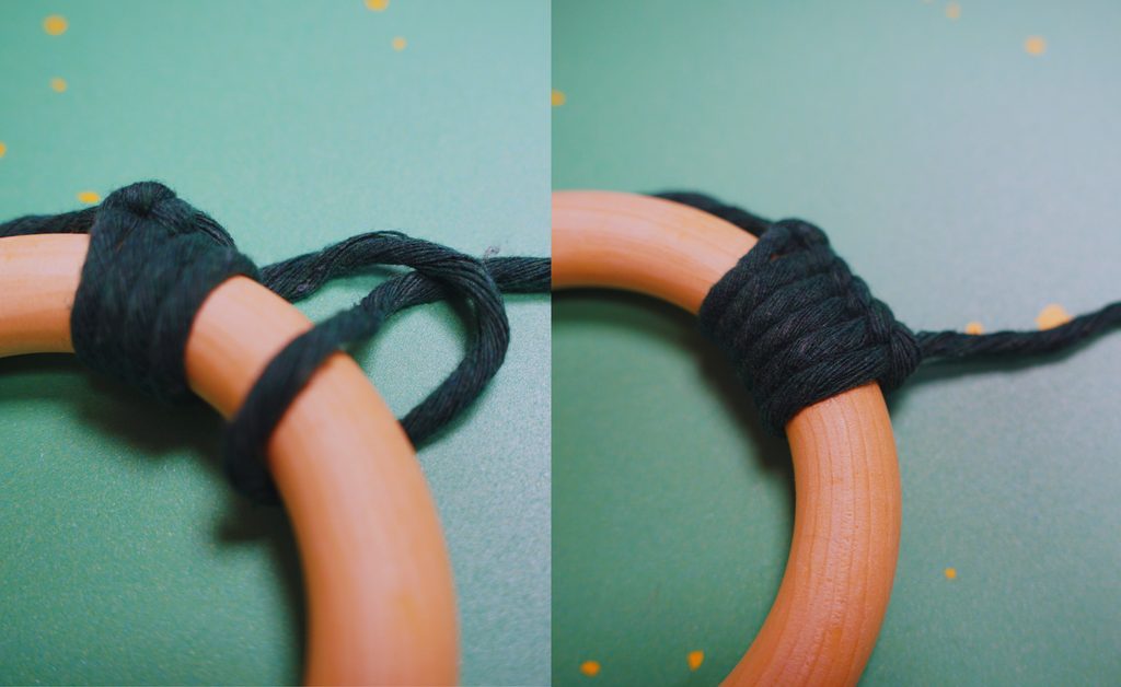 • Přízi obmotáme jednoduchým uzlíkem kolem dokola.