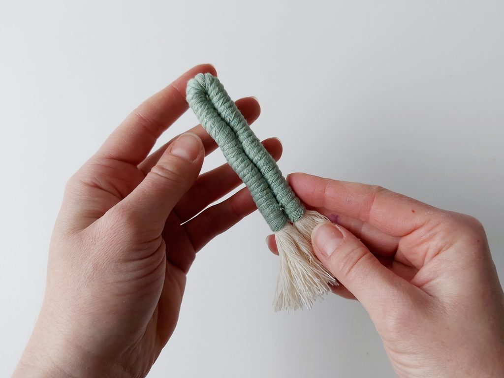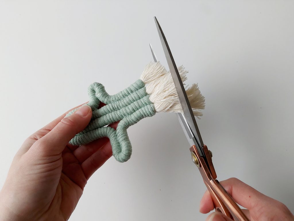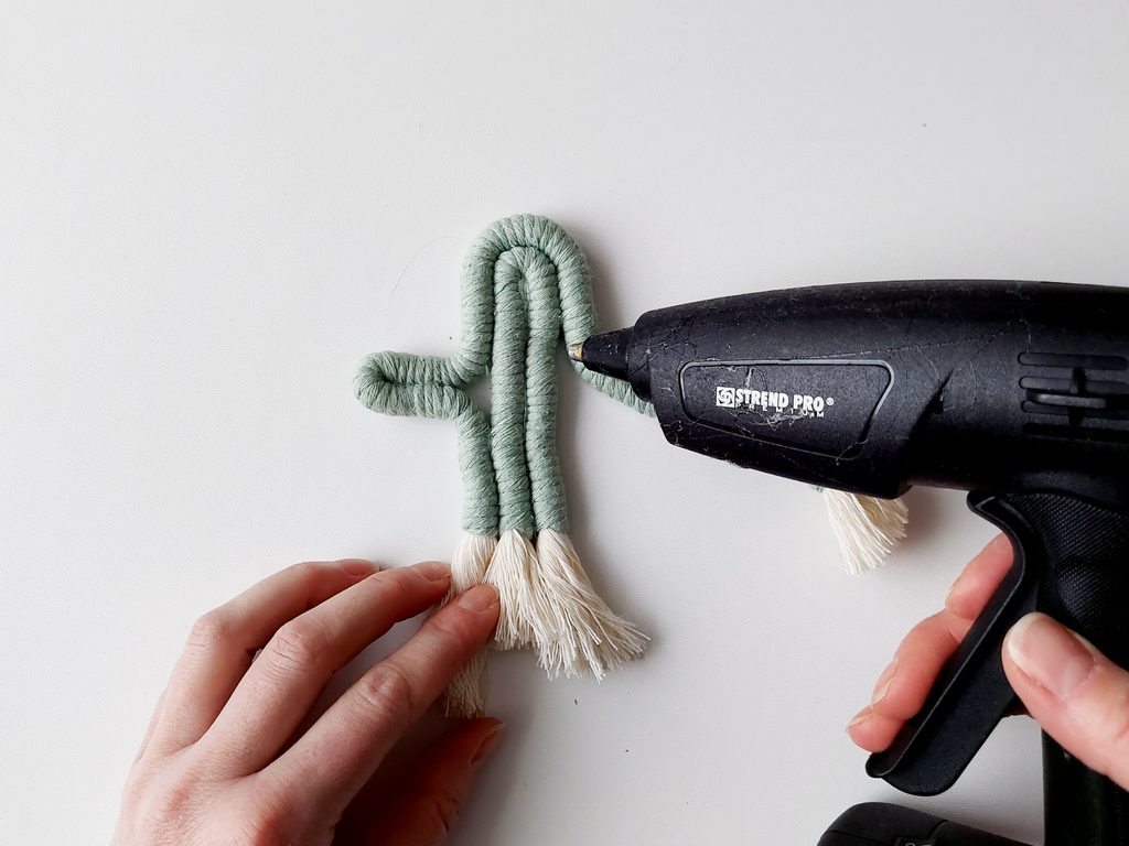 Celý postup opakujeme i s další přízí, tvarujeme tvar kaktusu a lepíme tavnou pistolí k sobě.