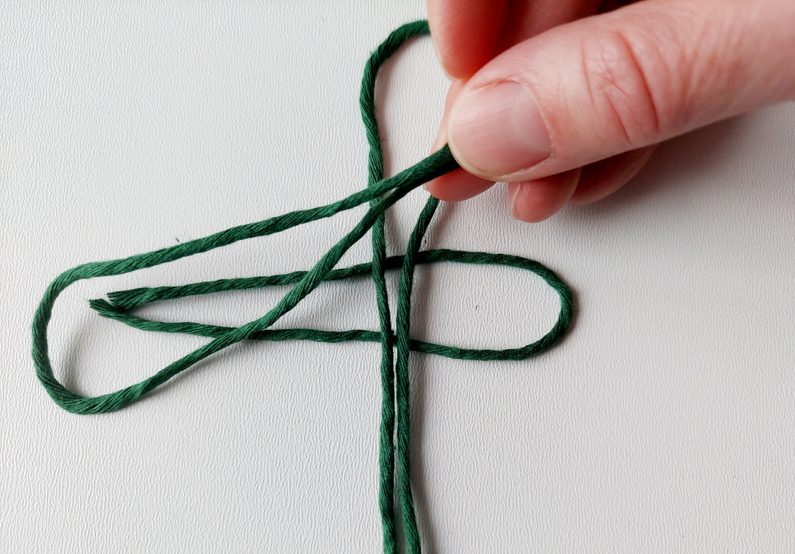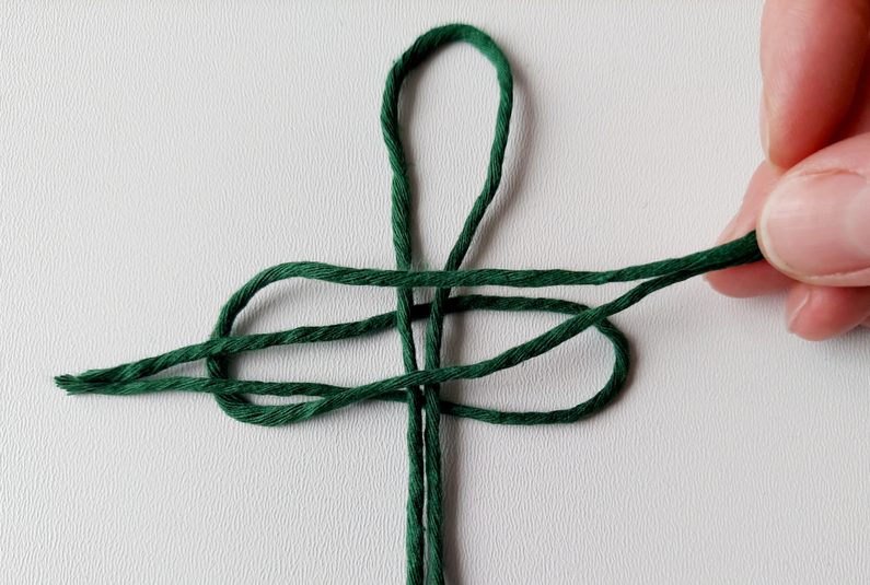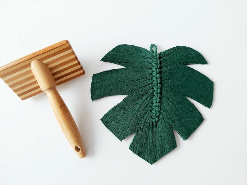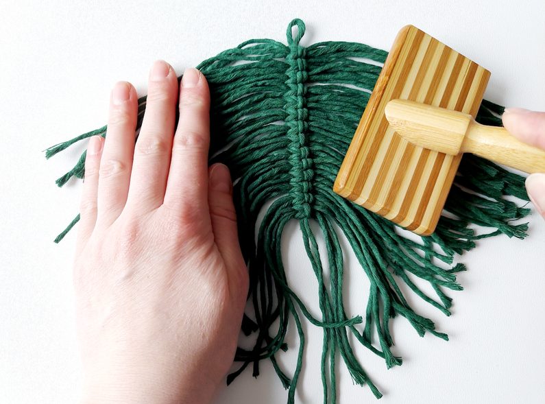 Šablona nám zároveň poslouží ke správnému určení délky středové příze, na kterou budeme následně uvazovat uzlíky.