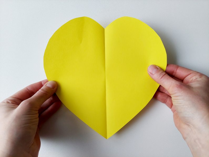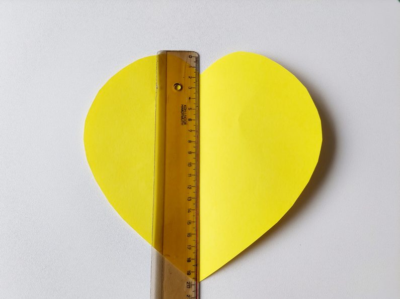 Z papíru si vystřihneme šablonu tvaru listu, kdy přehneme papír v polovině a dále stříháme tvar srdíčka.