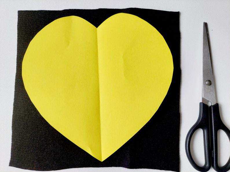Papírovou šablonu obkreslíme na filc a vystřihneme. Filc nalepíme na zadní část pro zpevnění.