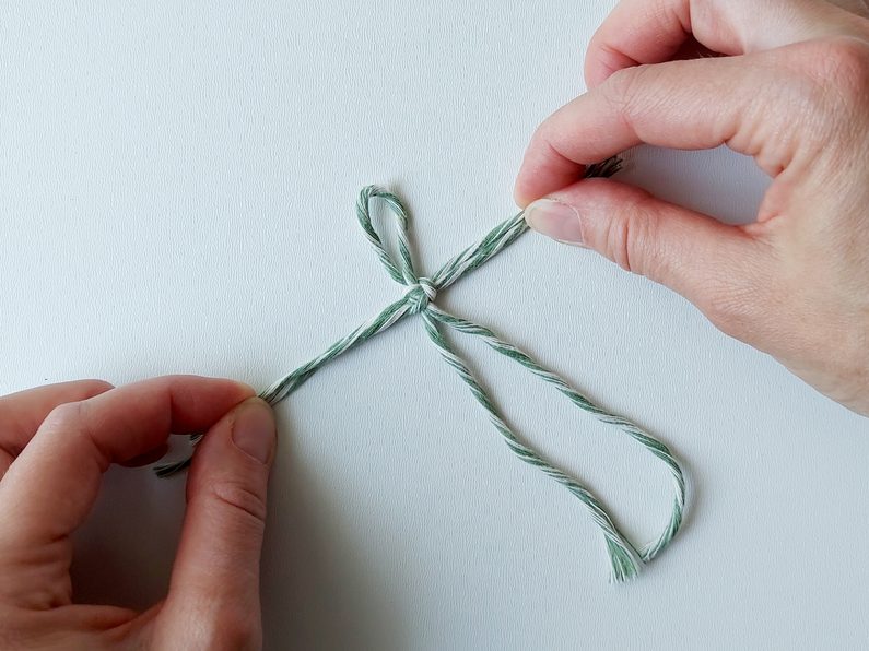 Zastřihneme konce příze, případně můžeme konce připevnit tavnou pistolí.