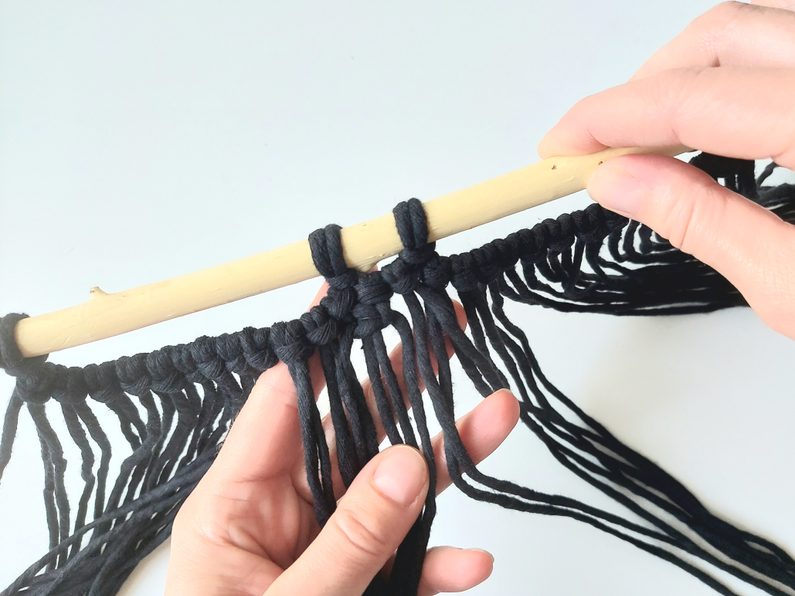 Základní přízi následně opět připevníme k tyčce tak, aby nám vznikl opět upevňovací uzel.