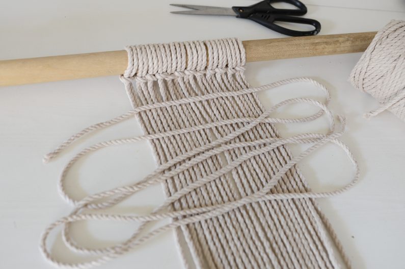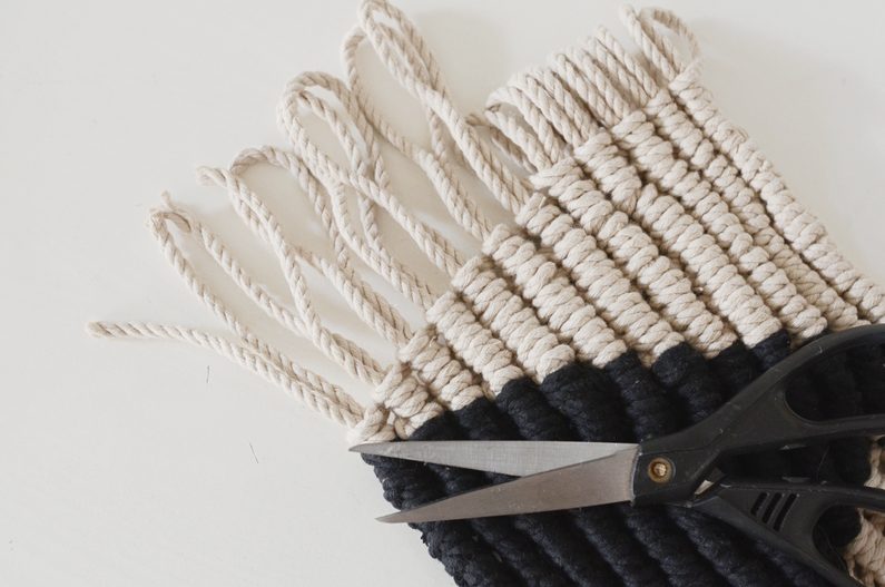 vnitřního průměru si ustřihněte 12 šňůr v délce 150 centimetrů. Pokud