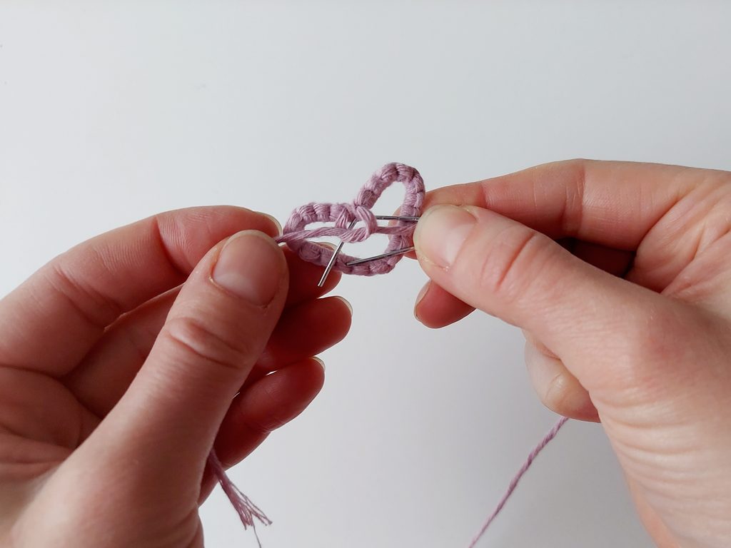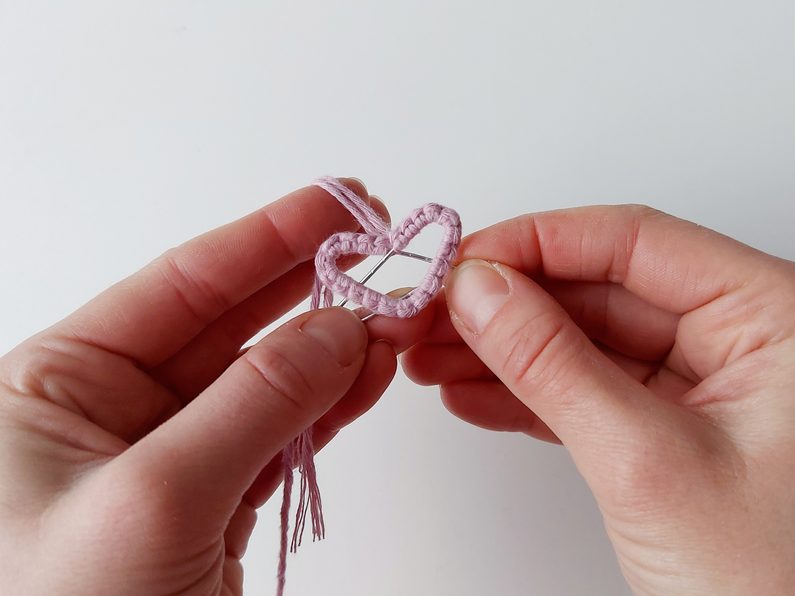Po celém obvodu srdíčka pleteme viz obrázky.