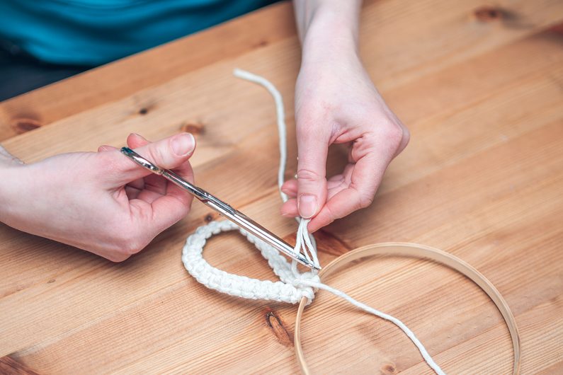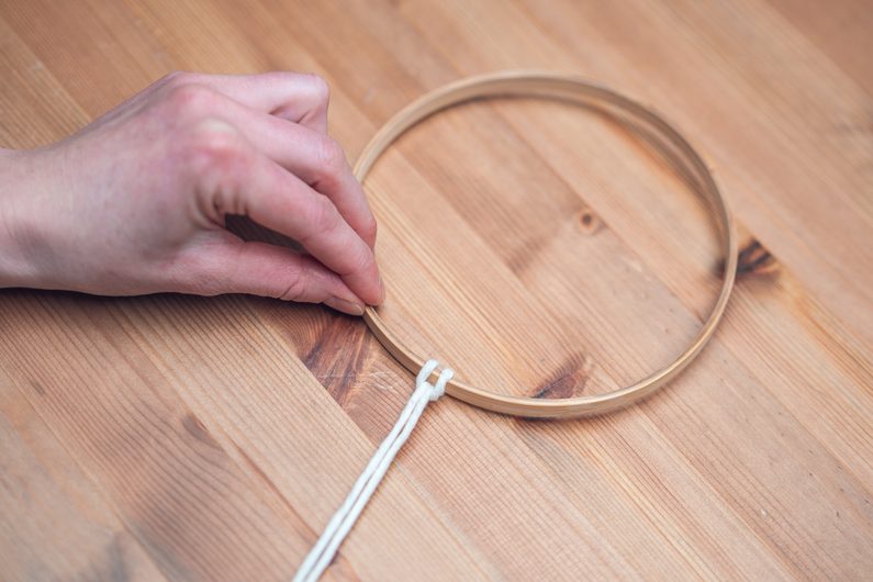 Cele ouško pomoci uzlíku připevníme ke kruhu.