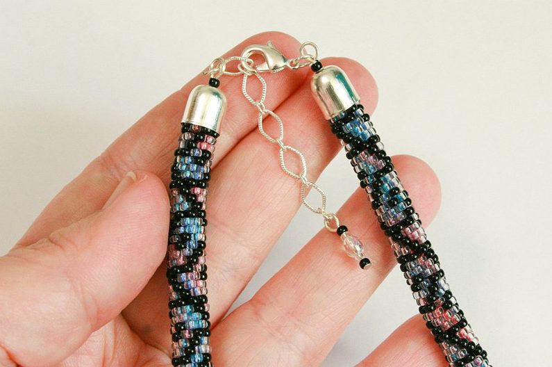 Zapínání připevněte pomocí spojovacích kroužků. Můžete také přidat prodlužovací řetízek s ozdobným korálkem (Obr 9-10).