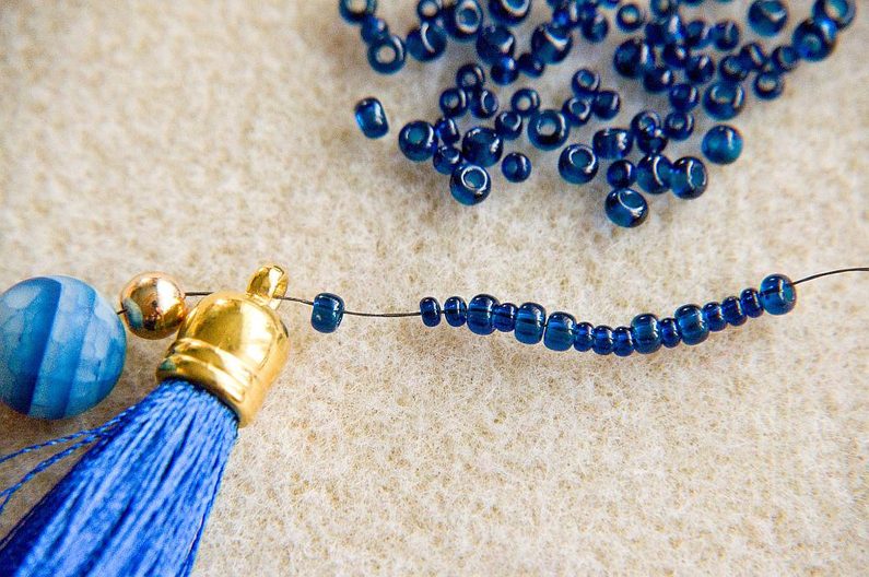 Bižuterní Hedvábný střapec 3cm modrý -