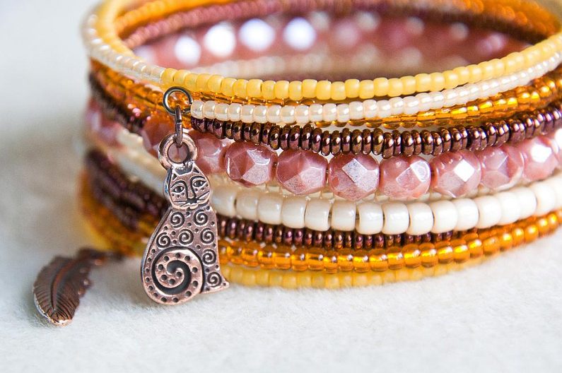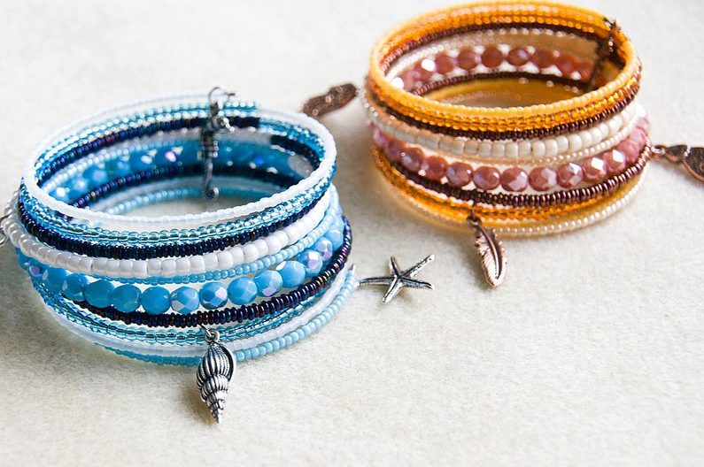 Pouhou změnou barevnosti při zachování stejných typů korálků a za použití jiné sady přívěsků si vykouzlíte třeba etno náramek pro večerní akci u mola. Kombinací je mnoho, pochlubte se nám! :)