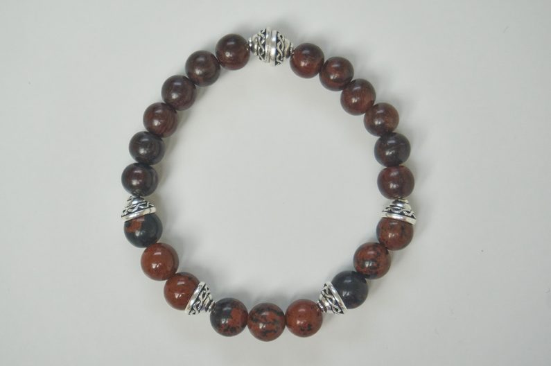 Poté stačí navlékat korálky ze dřeva a minerálů a TierraCast kaplíky dle obrázkového vzoru.