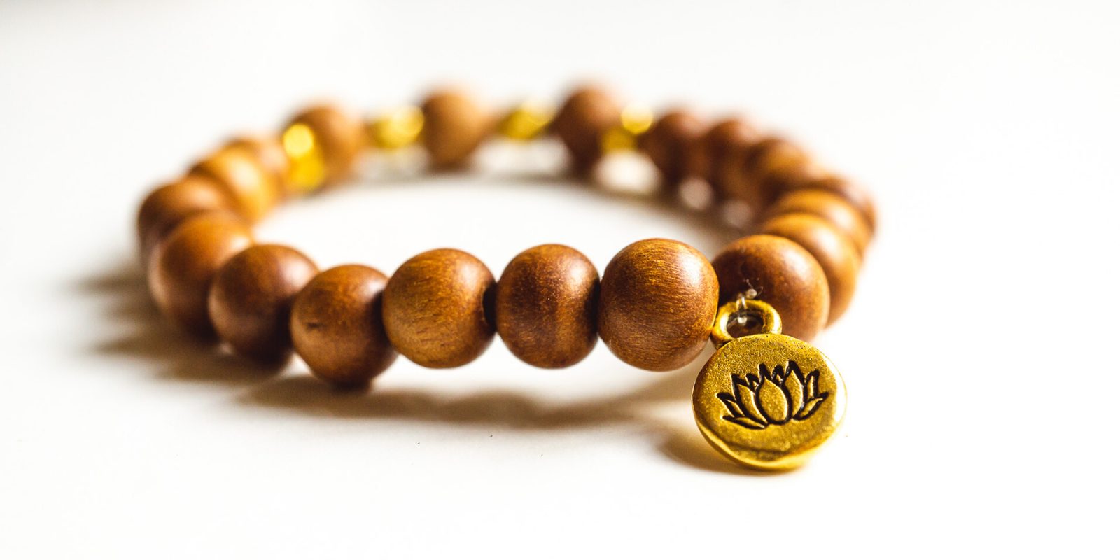 Na elastomer budeme navlékat dřevěné korálky, které prostřídáme s korálky Nuun Design . Jakmile dojdeme do poloviny náramku, navlékneme i Nuun Design přívěsek, zavěšený na spojovacím kroužku.