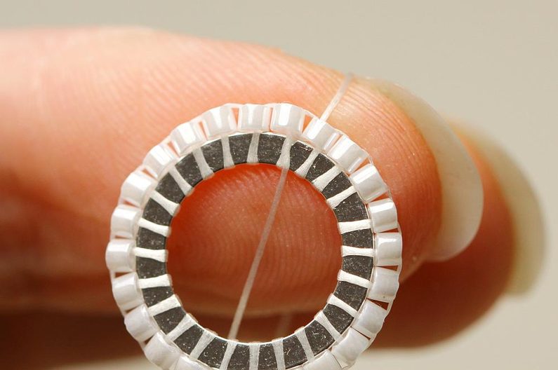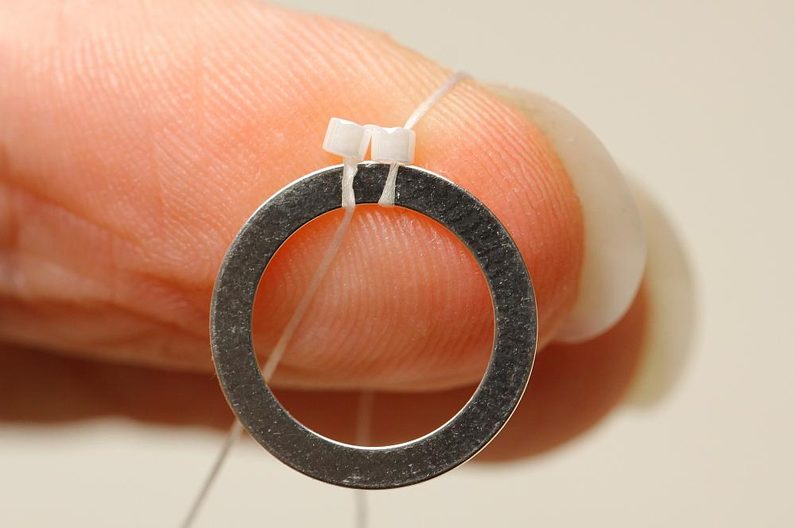 Jehlu provlékneme druhým korálkem z nové řady opět tak, aby se korálky postavily dírkou kolmo k obvodu. Utáhneme.