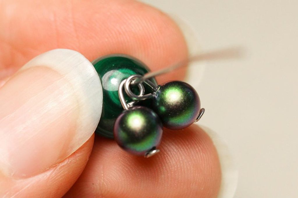 Na ketlovací nýt 50 mm navlékneme 10mm korálek malachitu.