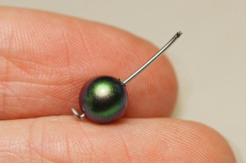Konec zkrátíme na potřebnou délku cca 8 mm a z tohoto konce kulatými kleštěmi vytvarujeme očko, do kterého zachytíme náušnicový háček. Teď už zbývá jen naketlovat druhou náušnici. :)