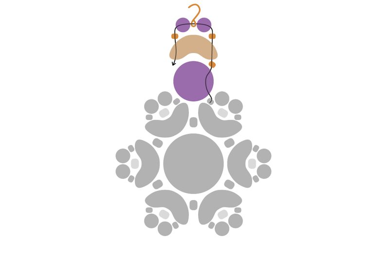 Navlékneme PC8 pravou dírkou, 1 TE15, 1 A krajní dírkou, 1 TE15 a 1 M. Navlékneme očkem