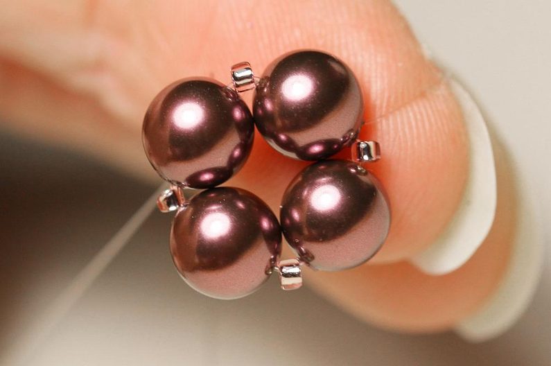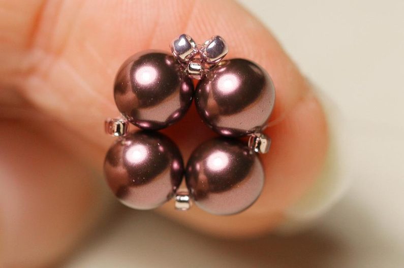 Do TR11 ve špičce navlékneme spojovací kroužek a propojíme náušnici s háčkem. Stejně ušijeme i druhou. :)