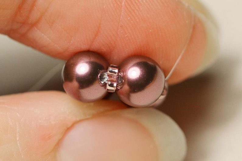 Opakujeme ještě jednou předchozí krok, takže mezi každými dvěma 6mm korálky máme vždy 2 TR15 vedle sebe.